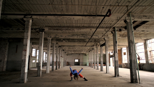 Measured viewpoints positioned on concentric circles dissect and engage the movement of a solo performer in an abandoned mill. The perspective of both movement and place collide. Suddenly unhinged, the figure unravels and weaves freely, abandoning all formal containments. Featuring original choreography by Pamela Vail and an original score by Jonathan Pfeffer.