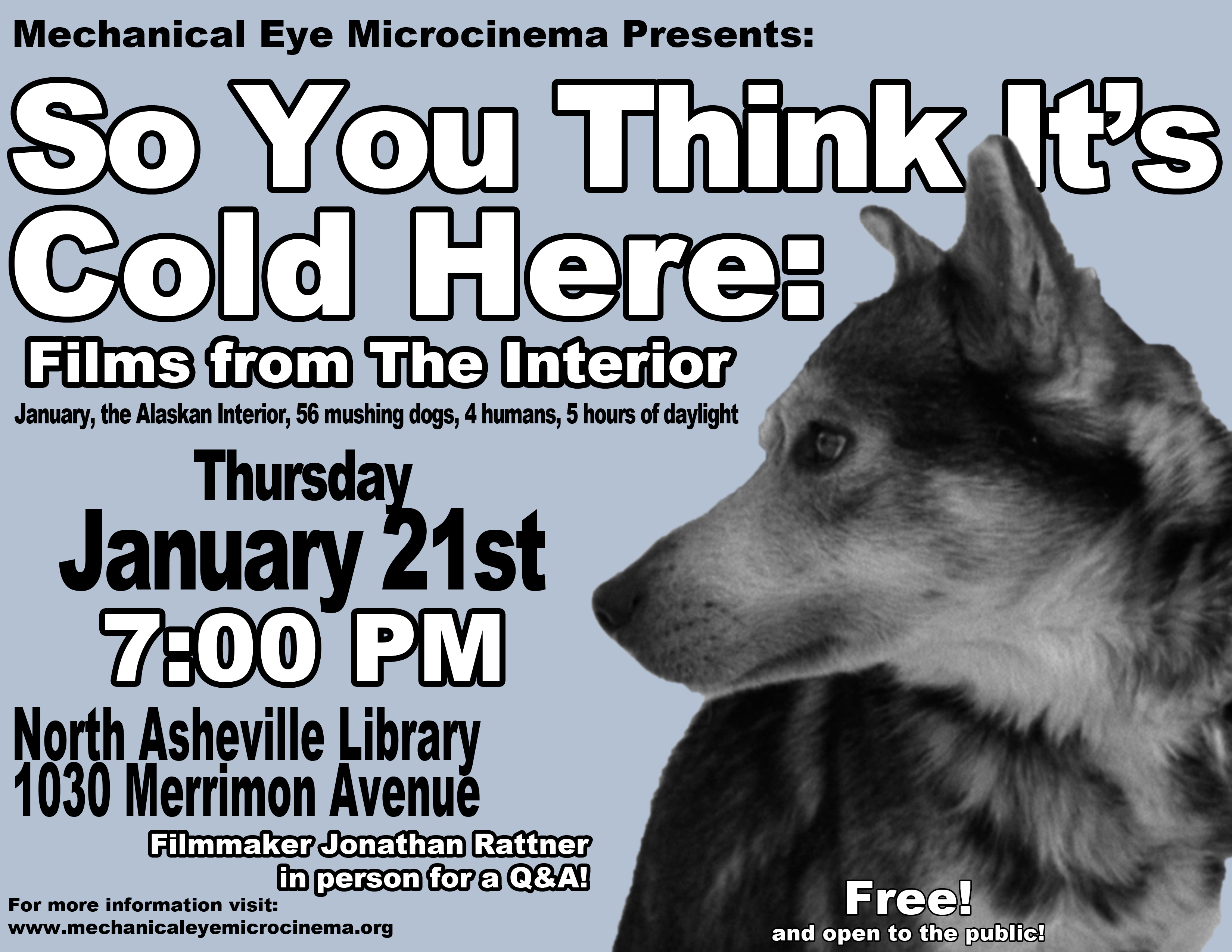 The Interior: January, the Alaskan Interior, 56 mushing dogs, 4 humans, 5 hours of sunlight. This observational work – shot on both 16mm and digital video – examines the interior worlds of its subjects and explores how to write with limited light.